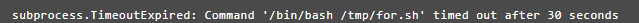 很多脚本运行时会卡住,导致调用脚本一直等待,这很显然不是我们想看到的,因此执行命令的超时Timeout设置很有必要。好在subprocess.run()提供了timeout参数,使用如下:
