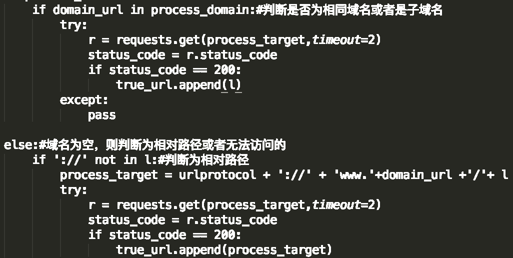 补全相对地址、防止越界(可爬取子域名,其他地址除外),并验证地址是否能正常访问