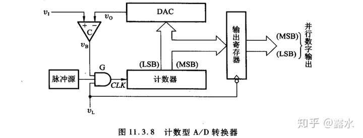 举两个A/D转换器的例子:(1)计数型反馈比较型A/D转换器