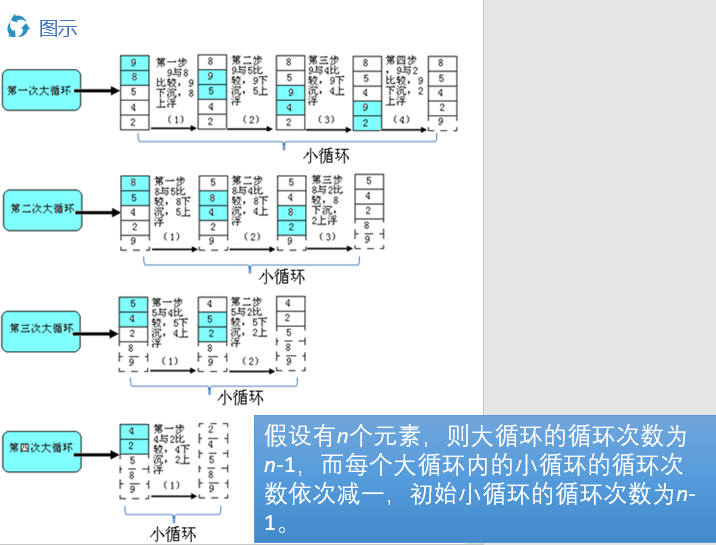 void s6() { //冒泡排序 /* 2,6,4,32,12,9,55,26,37,73, 2,4,6,12,9,32,26,37,55,73, 2,4,6,9,12,26,32,37,55,73, 2,4,6,9,12,26,32,37,55,73, 2,4,6,9,12,26,32,37,55,73, 2,4,6,9,12,26,32,37,55,73, 2,4,6,9,12,26,32,37,55,73, 2,4,6,9,12,26,32,37,55,73, 2,4,6,9,12,26,32,37,55,73, 2,4,6,9,12,26,32,37,55,73, */ freopen("sort.in","r",stdin); freopen("sort.out","w",stdout); //用冒泡法对n个数排序(由小到大) O(n2) int a[10005],n;//在没赋初值的情况下,数组a里的各元素值未知 cin>>n; for(int i=1; i<=n; i++)//从下标1即a[1]开始,a[0]不参与运算 { cin>>a[i]; } for(int j=1; j<=n-1; j++) //大循环共n-1次 { for(int i=1; i<=n-j; i++) //每个小循环的步数逐次递减 { if(a[i]>a[i+1])//比较两数,如前面数大于后面数,则小数上浮,大数下沉 { swap(a[i],a[i+1]); } } } for(int i=1; i<=n; i++) { cout<<a[i]<<" "; } fclose(stdin);//关闭重定向输入 fclose(stdout);//关闭重定向输出 }