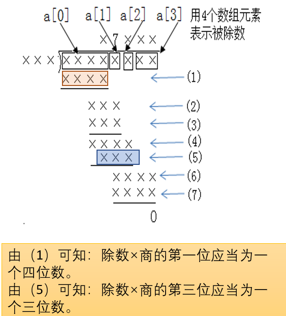 //除式还原 void s13() { int a[4],b,c[3],d[4],i=1; for(a[0]=1010; a[0]<=1377; a[0]++) for(b=112; b<=142; b++) for(c[0]=8; c[0]<=9; c[0]++) if(b*c[0]>1000&&(d[0]=a[0]-b*c[0])>=10&&d[0]<100) for(a[1]=0; a[1]<=9; a[1]++) if((d[1]=d[0]*10+a[1]-b*7)>=100&&d[1]<b) for(a[2]=0; a[2]<=9; a[2]++) for(c[1]=7; c[1]<=8; c[1]++) if(b*c[1]<1000&&(d[2]=d[1]*10+a[2]-b*c[1])>=10&&d[2]<100) for(a[3]=0; a[3]<=99; a[3]++) for(c[2]=8; c[2]<=9; c[2]++) if(d[2]*100+a[3]-b*c[2]==0) { /* printf("No %d:",i++); printf("%d%d%d%d%d/",a[0],a[1],a[2],a[3]/10,a[3]%10); printf("%d=",b); printf("%d7%d0%d\n",c[0],c[1],c[2]); */ cout<<"No "<<i++; cout<<a[0]<<a[1]<<a[2]<<a[3]/10<<a[3]%10<<" 除以 "; cout<<b<<"="; cout<<c[0]<<"7"<<c[1]<<"0"<<c[2]<<endl; } }