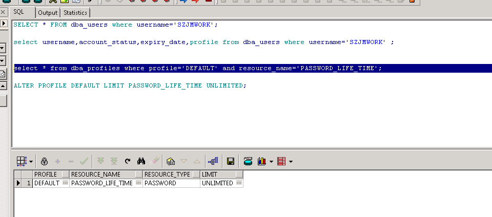 select username,account_status,expiry_date,profile from dba_users where username='SZJMWORK' ;