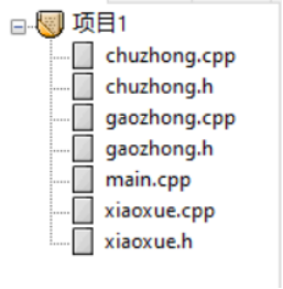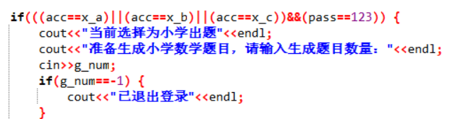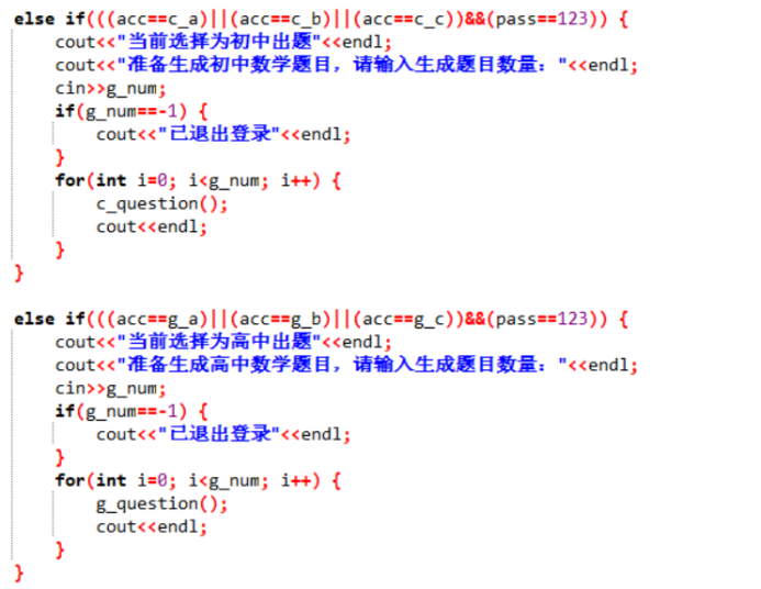 代码是C++语言编写,分为四部分:小学、初中、高中的题目生成函数,以及主函数。