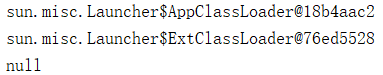 public class ClassLoaderTest { public static void main(String[] args) { ClassLoader classLoader = ClassLoaderTest.class.getClassLoader(); // 默认由 AppClassLoader 加载类 System.out.println(classLoader); // ExtClassLoader System.out.println(classLoader.getParent()); // Bootstrap ClassLoader,由 JVM 启动 System.out.println(classLoader.getParent().getParent()); } }