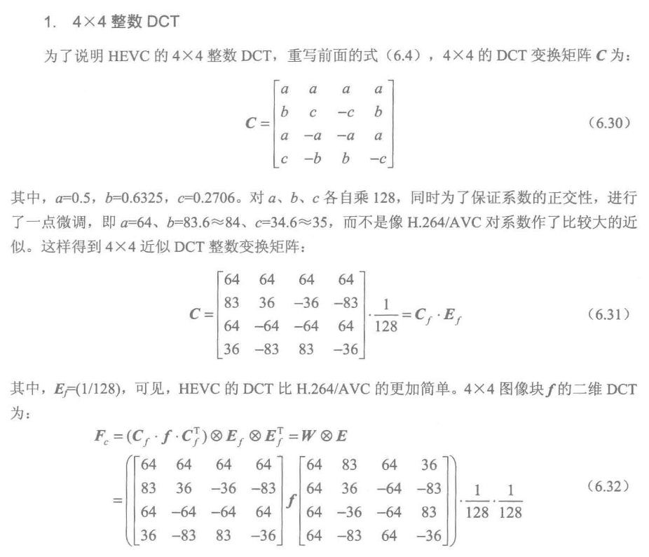 HEVC的变换运算的顺序和H264/AVC 不同变换时首先进行列运算,然后再进行行运算HEVC的整数变换的基矢量具有相同的能量,不需要对它们进行调整或补偿,而且对 DCT的近似性要比H264/AVC好。