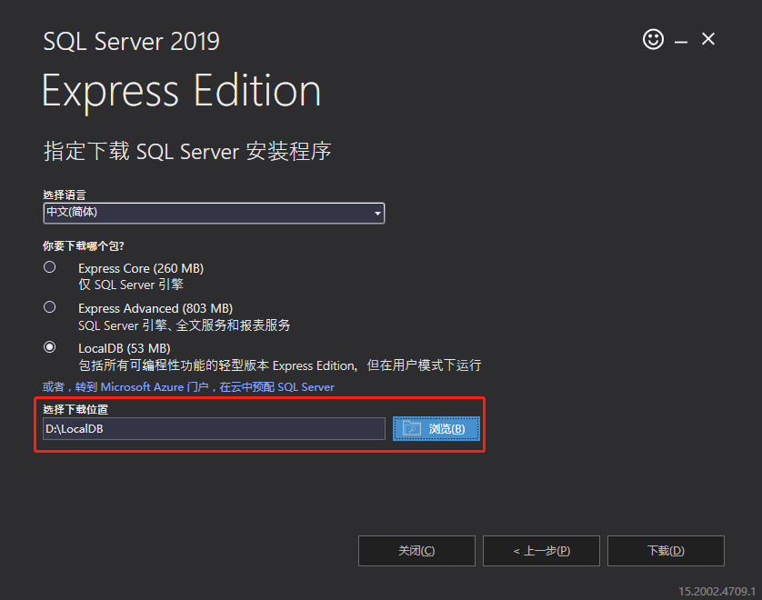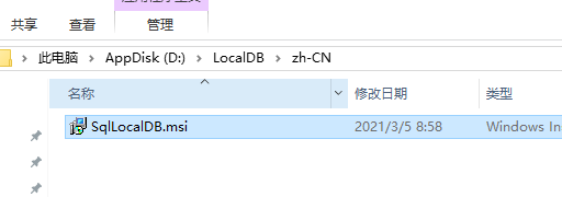 3.安装LocalDb(这个是轻量化只能本地连接的一个Sql Server数据库,供学习测试使用)去微软下载一个LocalDb2019安装就好。