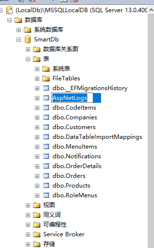 这里找到了,有两种解决方法,解决方法1就是在数据库中自己新建这个表,第二种,就是想办法把这个加到SmartDbContext中