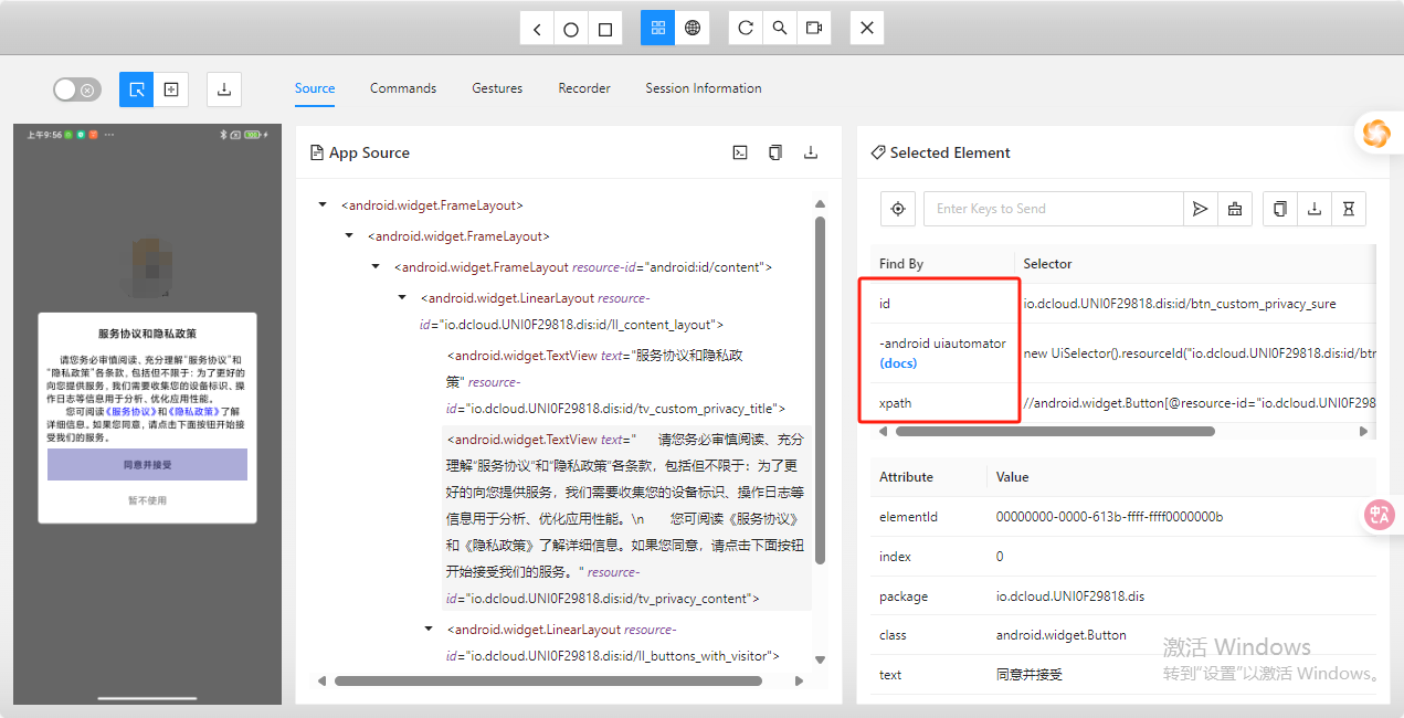 定位工具:Appium Inspector(网页版)。定位工具的选择一般选择对应的自动化框架,否则有可能会出现问题。