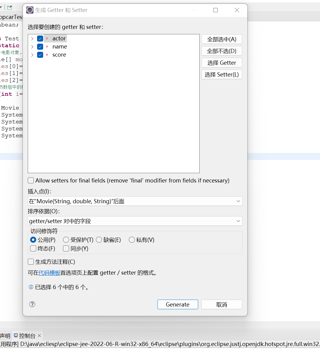 按住shift+alt+s,选择getter and setter选项