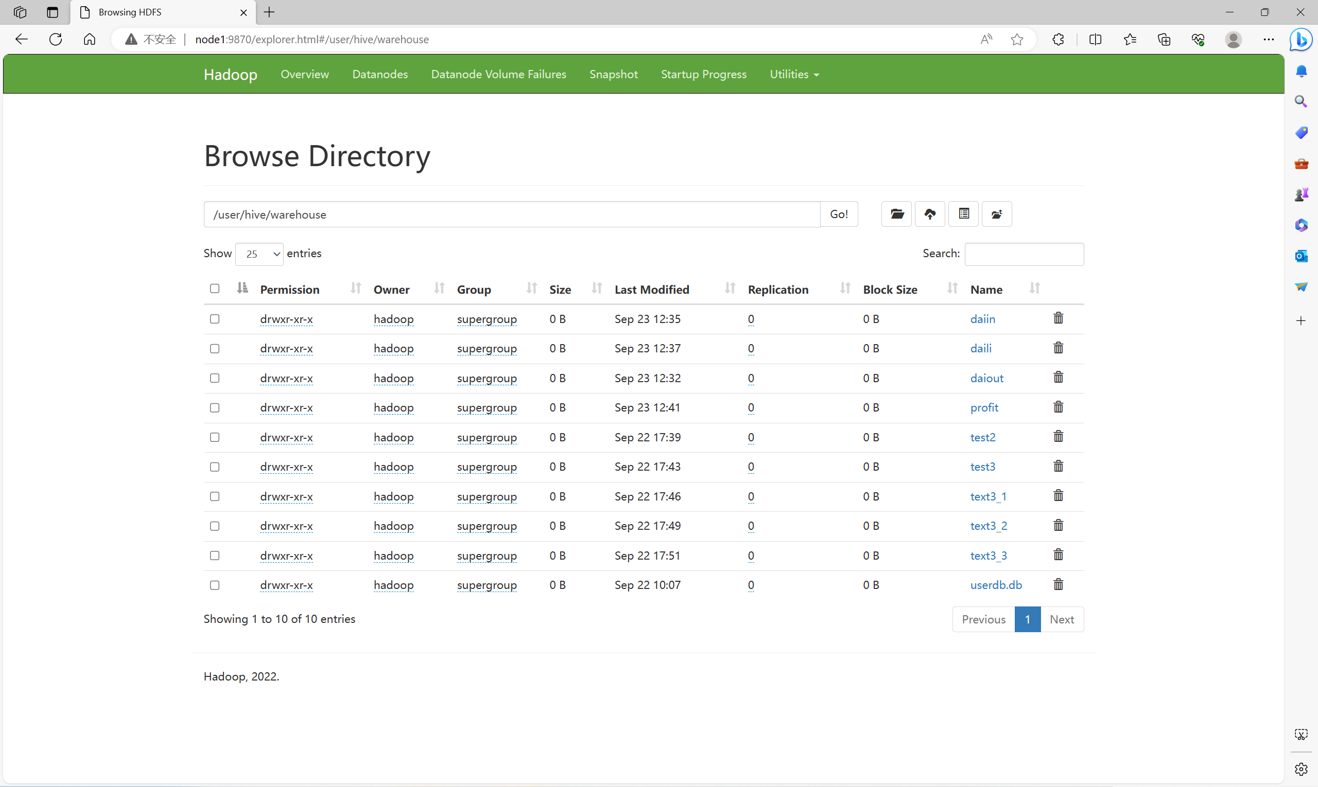 4、进入user/hive/warehouse目录就能找到对应数据表
