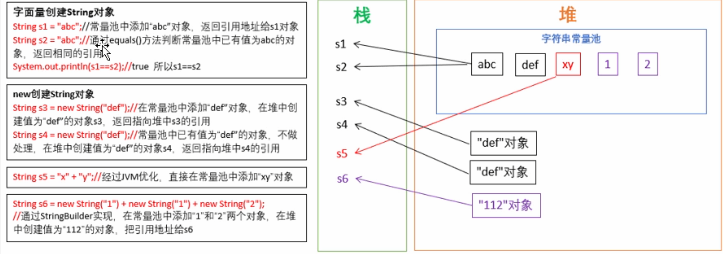 但是图中第二个框的部分是有问题的,s3是在栈中而非在堆中,s3指向堆中一个值为"def"的对象