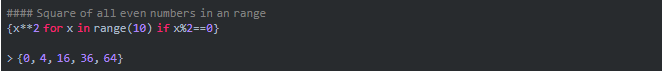 我们用于创建列表的方法也可以用于创建集合。让我们使用包含范围内所有偶数的平方根方法来创建一个集合。