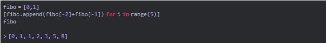 一组数字,其中每个数字(斐波那契数)是前面两个数字的和。最简单的斐波那契数列1,1,2,3,5,8,13等等。可以使用列表推导式和for循环在一个范围内创建斐波那契数列。