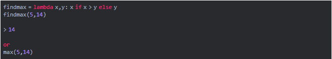 在上面的代码中,我们使用lambda函数检查比较条件,并根据返回的最大值。 或者使用max()内置函数。