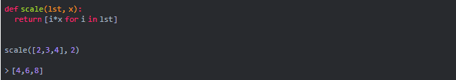 有时候我们需要将列表中的元素缩放2到5倍。下面的代码解释了如何做到这一点。