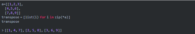需要将所有行转换为列,反之亦然。在Python中,可以使用zip函数在一行代码中置换一个矩阵。