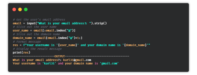目的:编写一个Python脚本,可以从邮件地址中获取用户名和域名。