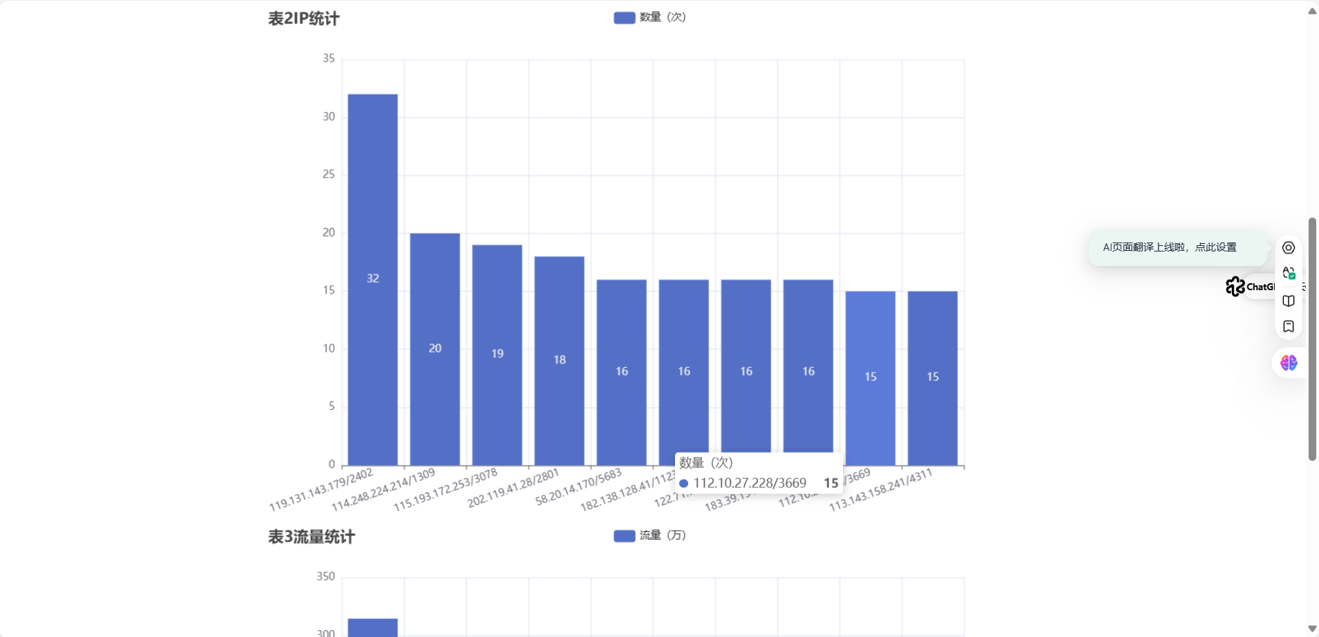 将统计结果倒入MySql数据库中,通过图形化展示的方式展现出来。