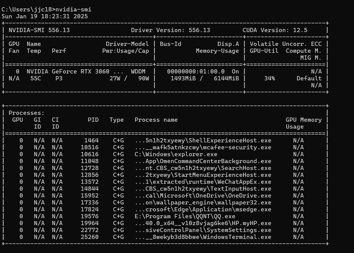 第一步:通过运行nvidia-smi命令检查我的电脑是否有NVIDIA GPU,并且查看我的CUDA版本