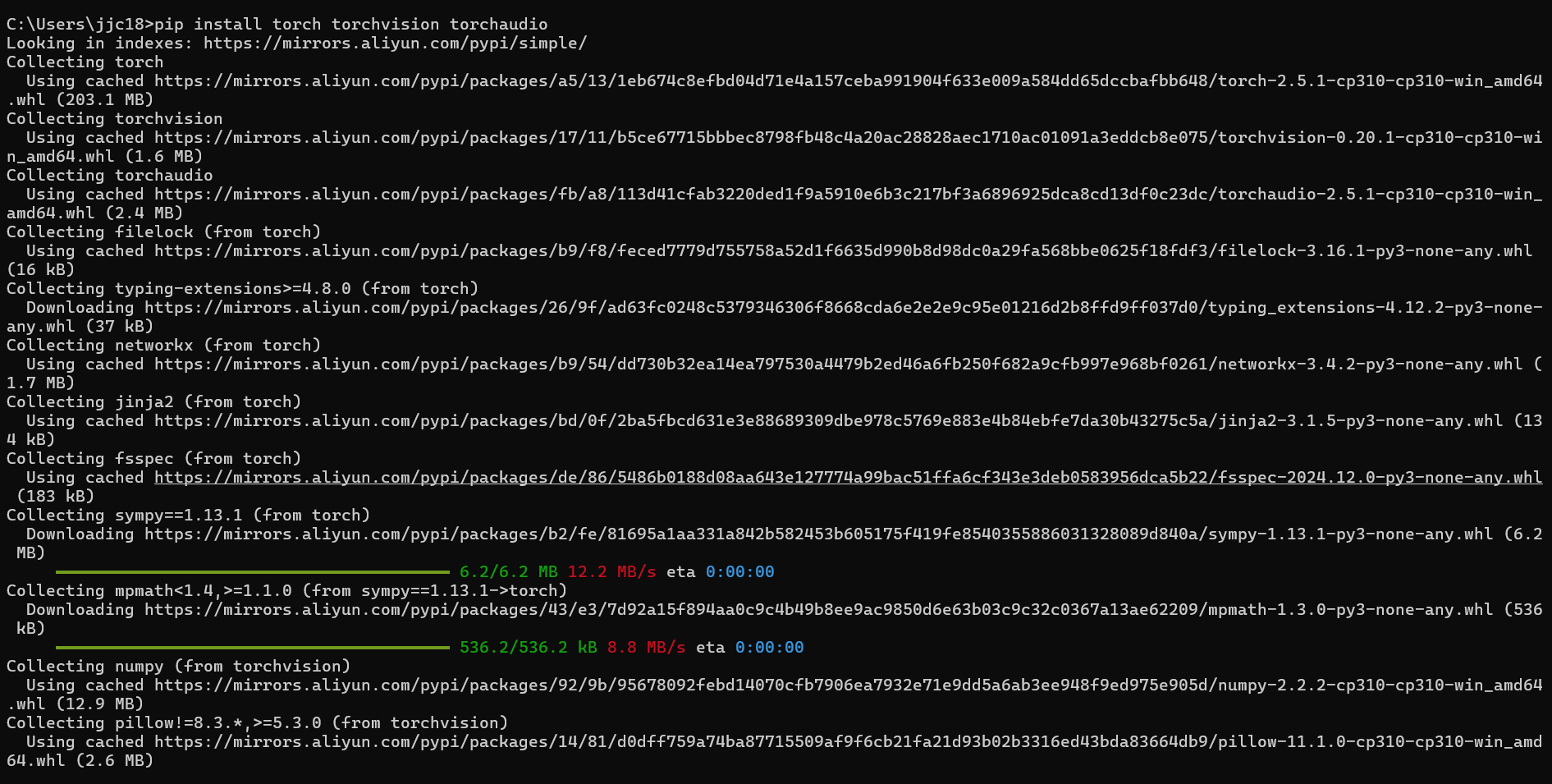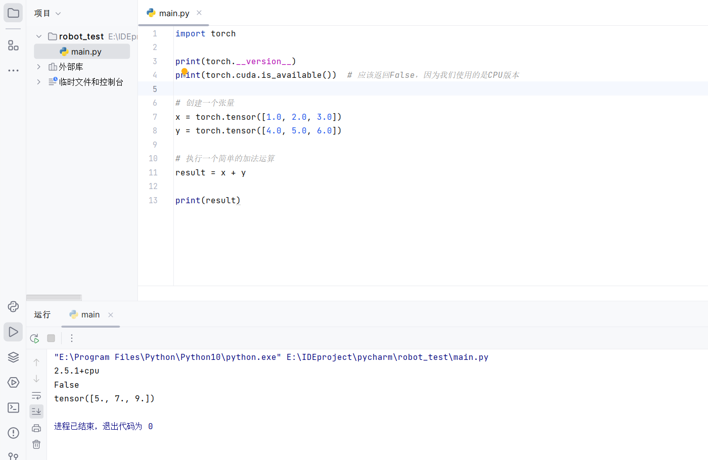 并通过运行以下Python代码来验证PyTorch是否正确安装: