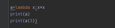 a=lambda x:x*x print(a(3)) # 注意:这里直接a(3)可以执行,但没有输出的,前面的print不能少