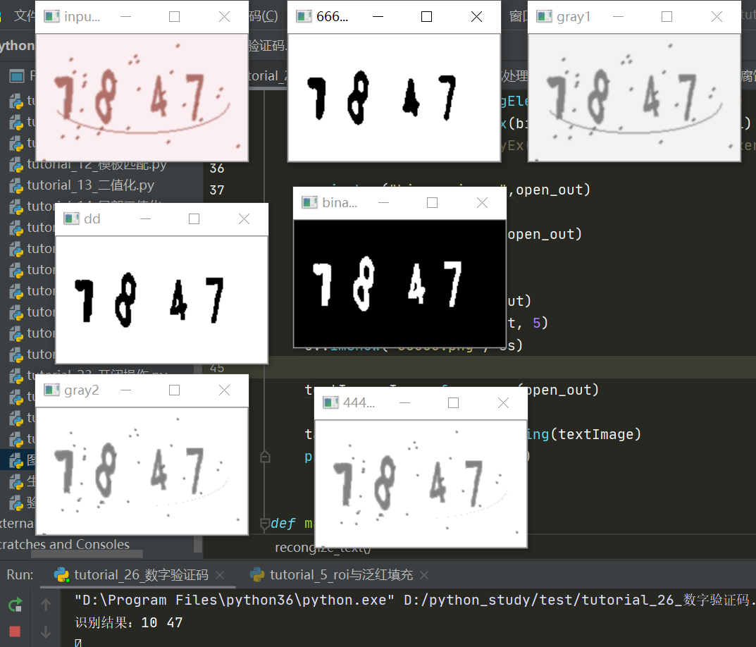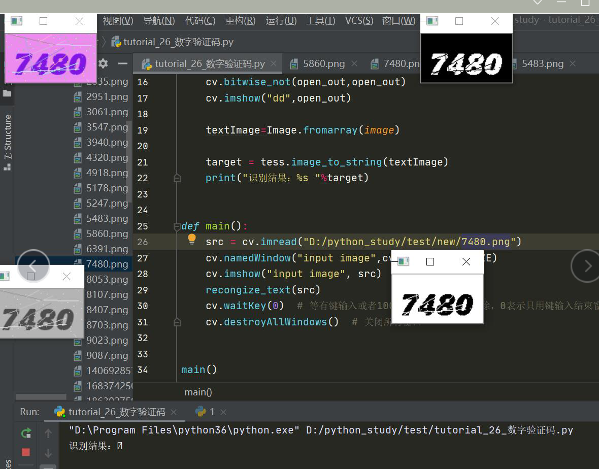 或者直接识别不出来,不同的验证码,需要选取不同的opencv图像处理方式