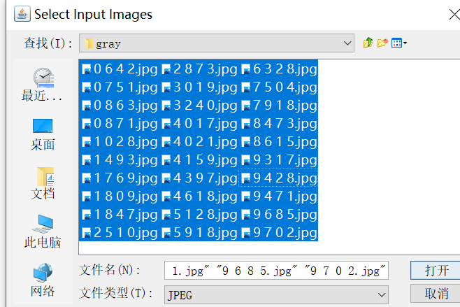 点击顶栏的Tools选项,选择Merge TIFF.. 进入你要训练的样本图片所在的目录,点击Ctrl+Alt+A,选择所有图片点击打开: