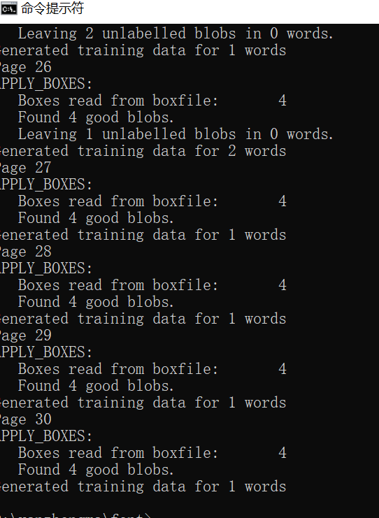 在命令行执行: tesseract langyp.font.exp0.tif langyp.font.exp0 -l eng -psm 7 nobatch box.train