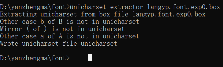 在命令行执行: mftraining -F font_properties -U unicharset -O langyp.unicharset langyp.font.exp0.tr