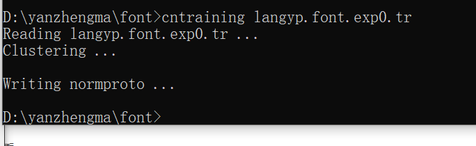 在命令行执行: cntraining langyp.font.exp0.tr