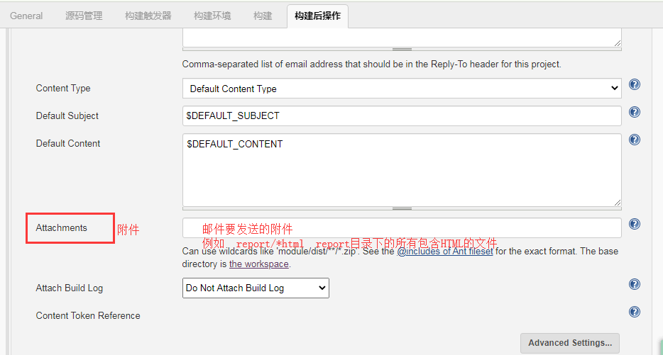 构建任务后报如图错误,是因为没有设置trigger点,默认是在任务失败的时候才会发邮件,可以在任务选择"Editable Email Notificaiton"以后,点击“高级”,然后在Add a Trigger下来列表中选择一个trigger点,比如"Success",这样任务成功也会发送邮件。同时,对于每一个trigger点,还可以设置其具体配置,比如收件人,邮件内容等等。