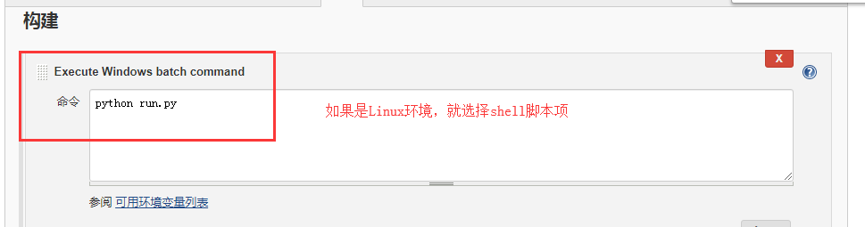 4、点击构建项目,输入项目名称,配置好脚本文件启动命令(注意:需要把Python。exe安装文件,配置到用户变量和系统变量中,不然执行时,Jenkins可能找不到Python)
