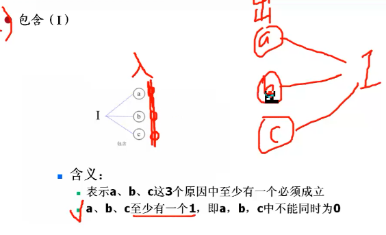 或 v (逻辑或):若几个原因中有一个出现,则结果出现,若几个原因都不出现,则结果不出现