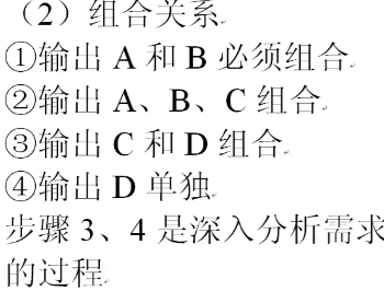 (3)在步骤二的基础上,找到输出的限制关系和组合关系