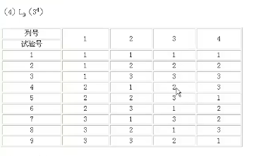 2、根据控件和控件的取值个数,选择一个合适的正交表
