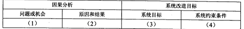 因果分析是问题分析阶段一项重要技术,可以得出对系统问题的真正理解,并且有助于得到更具有创造性和价值的方案。请将题目中所列(a)?~?(i)各项内容填入表中(1)?~?(4)对应位置。