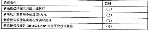 系统约束条件可以分为四类,请将类别名称填入表中(1)?~?(4)对应的位置。