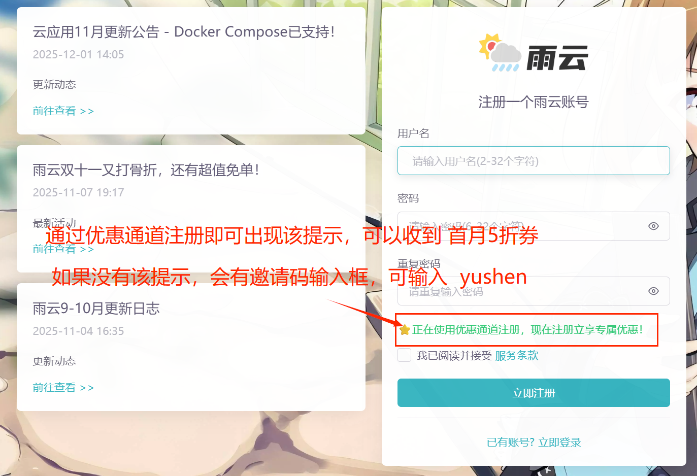 雨云首月5折券领取教程——雨云优惠介绍【2025.12.15修订】