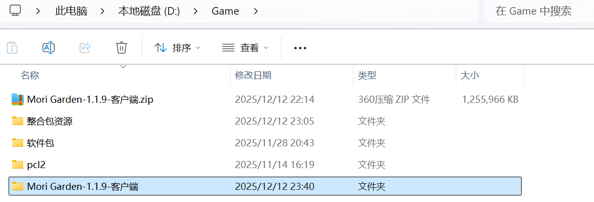 将客户端压缩包放到游戏想要放置的文件夹里去。