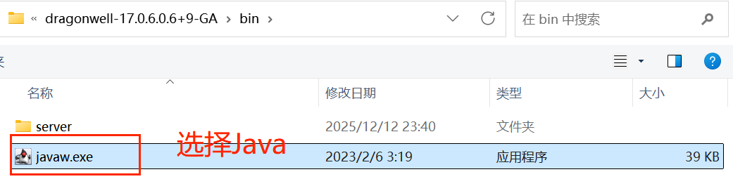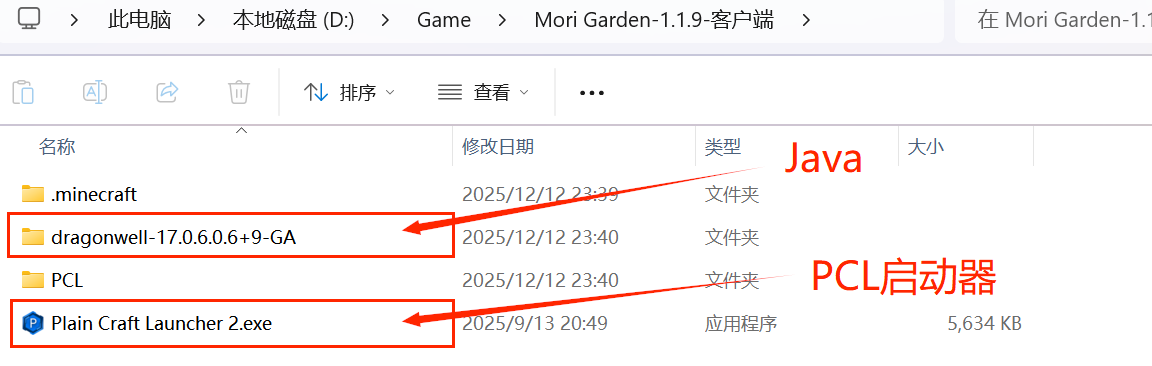 (我这边完整路径展示: D:\Game\Mori Garden-1.1.9-客户端\dragonwell-17.0.6.0.6+9-GA\bin)