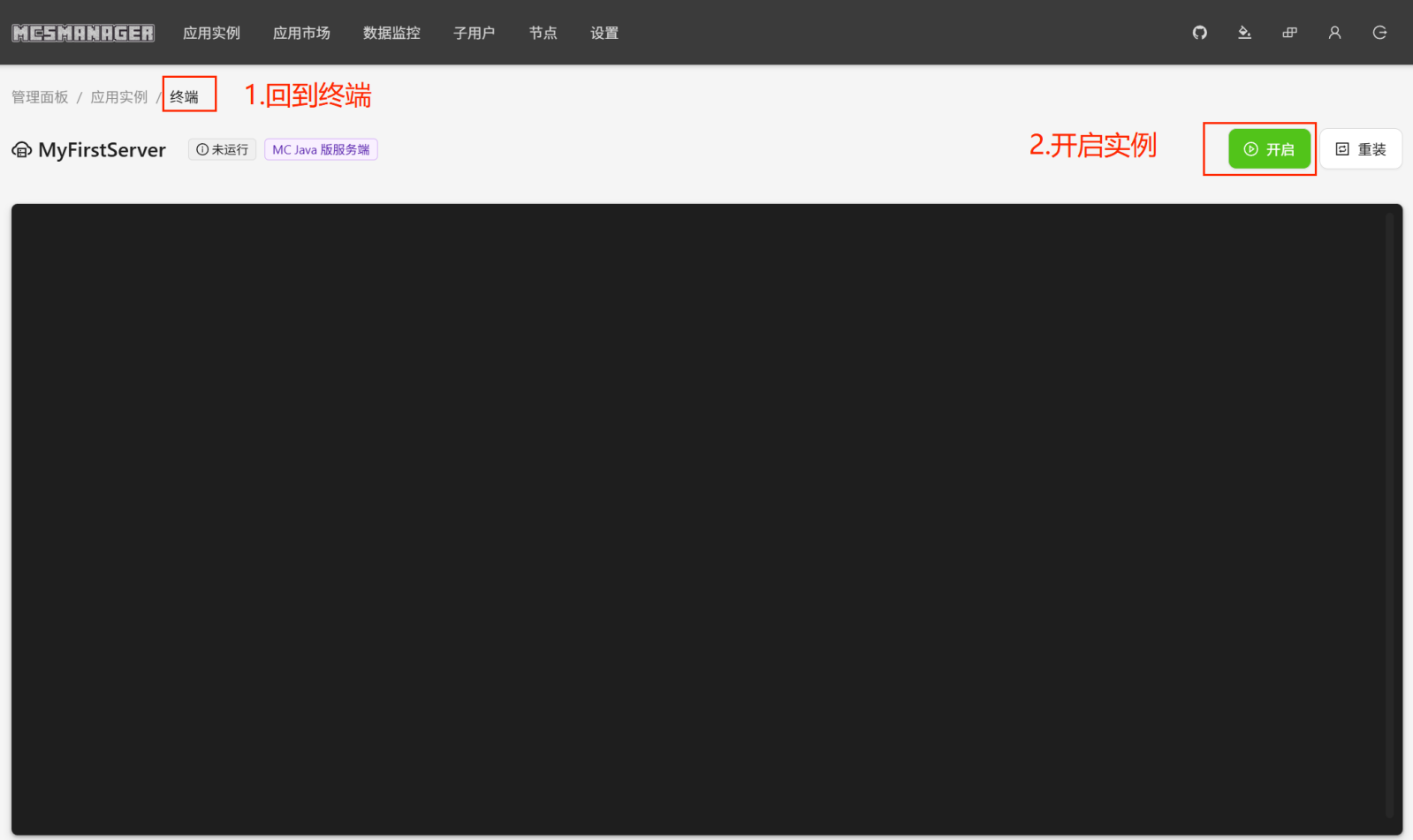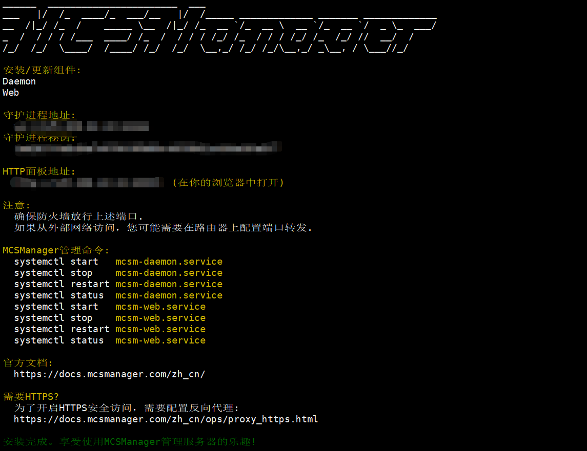 安装完成后,在浏览器输入如上图的HTTP面板地址来进入MCSM面板。