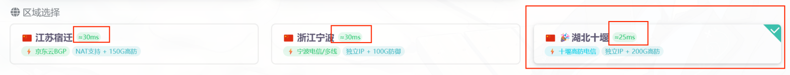 延迟越低越好,有的区域是配置IP的,本期也是演示有IP的服务器如何部署服务器。