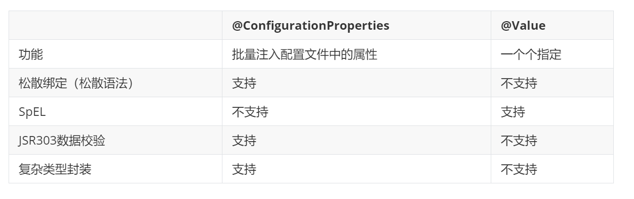@Value获取值和@ConfigurationProperties获取值比较