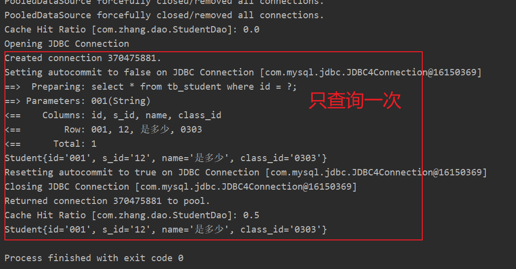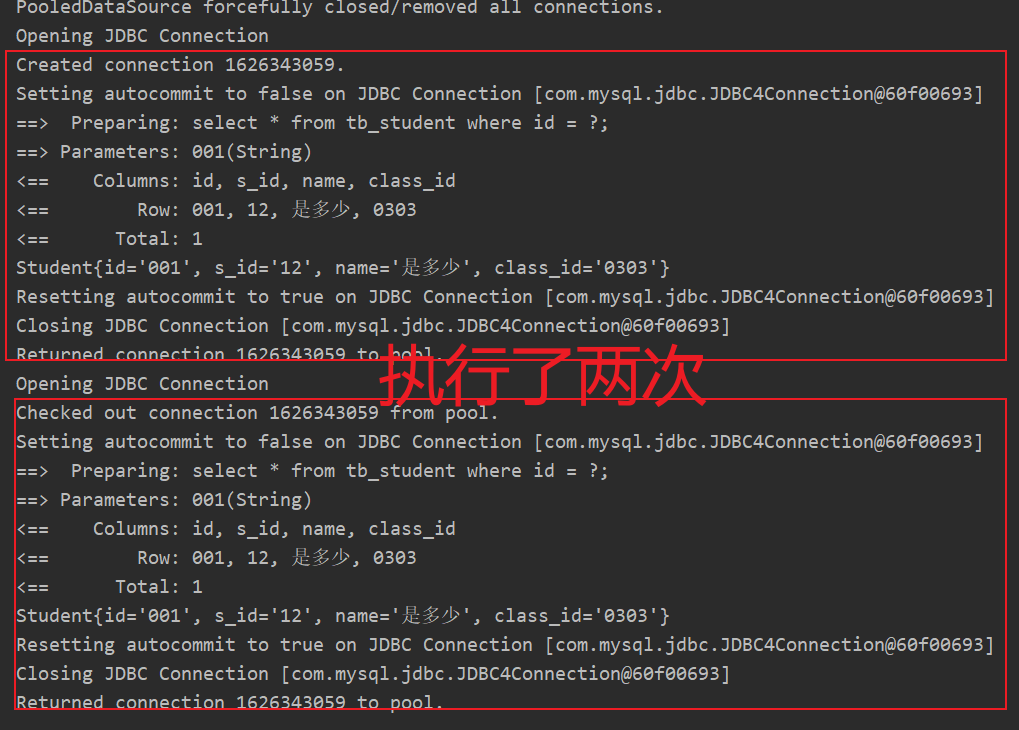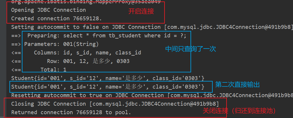 如果在会话期间,重复查询同一条Sql语句,将直接从缓存中读取(前提是缓存没有失效,后面将会讲解缓存失效的场景)