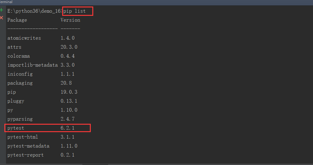 第二步:输入pip list可以查看pytest是否安装成功,如果出现以下列表,则表示安装成功