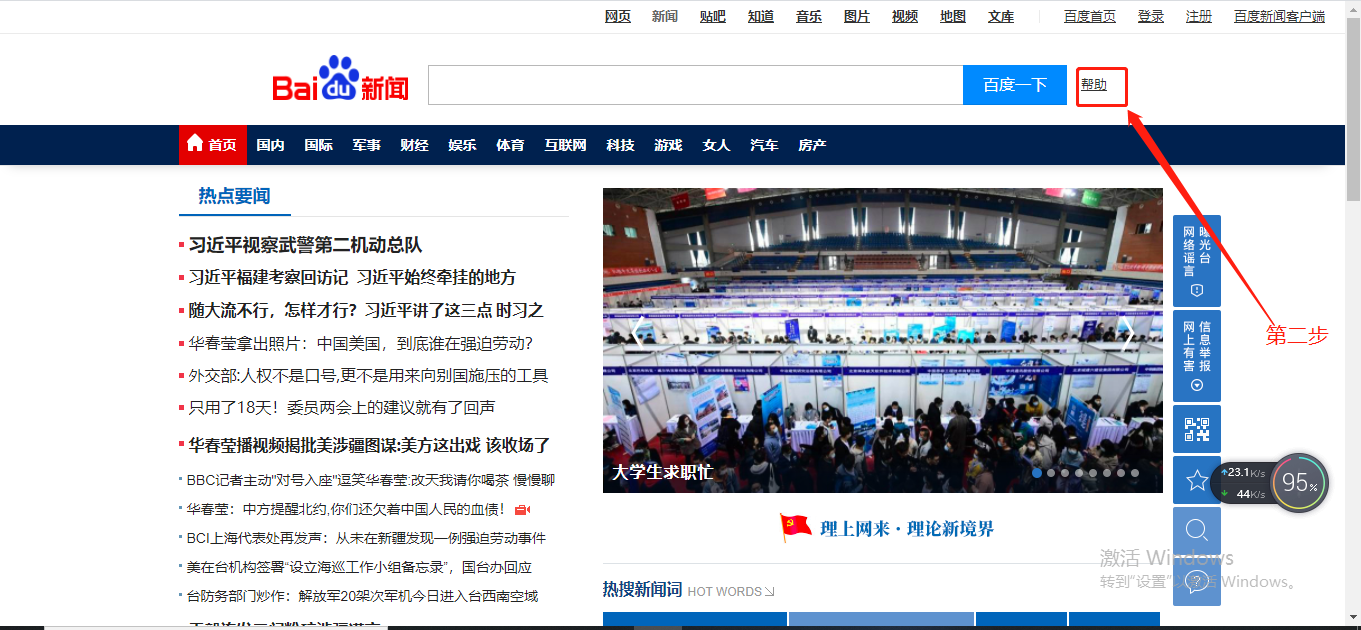 比如:我们想要打开百度浏览器,然后点击“新闻”,然后定位“帮助”的元素