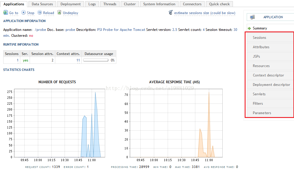 将probe.war扔到$CATALINA_HOME/webapps下然后重启Tomcat