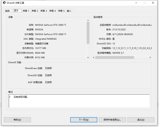 图2 3.dxdiag 检查directx的信息,检查显卡的状态,见图3。
