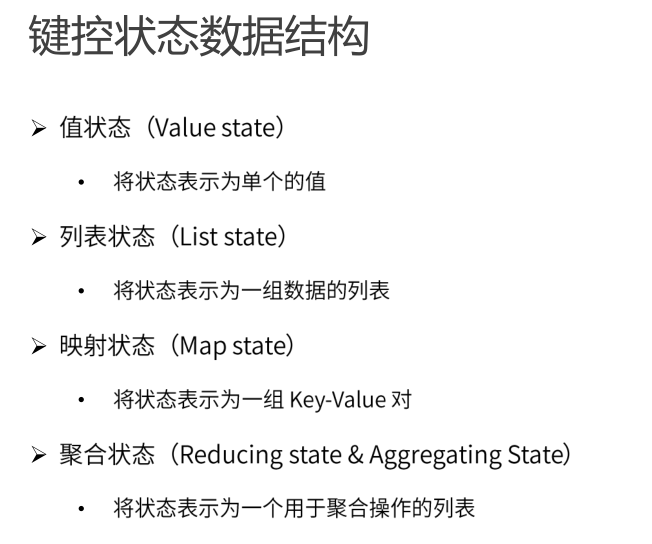 一般都用托管状态,按照是否Keyby可以分位算子状态和键控状态,状态管理和任务是绑定的,同一算子不同并行度是各自维护状态的,