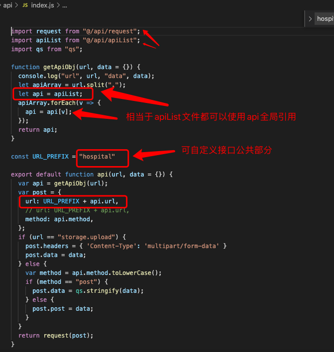 分别是:apiList.js、index.js、request.js